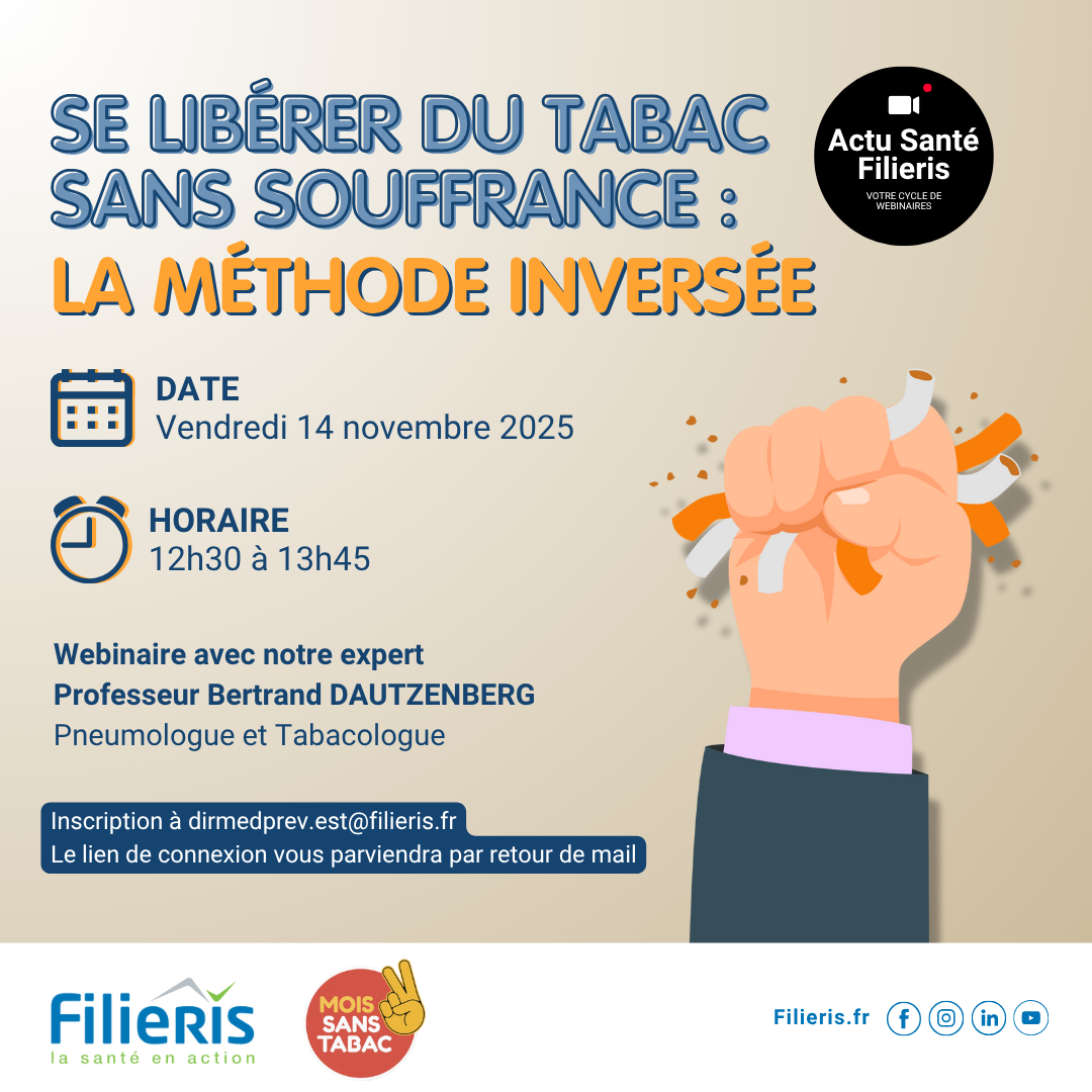 À l’occasion du Mois sans tabac, le cycle de webinaires « Actu Santé Filieris » vous propose un rendez-vous dédié à l’accompagnement du sevrage tabagique.