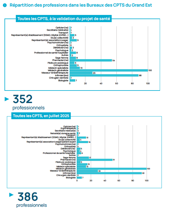 L'étude qu'elle publie aujourd'hui repose sur les données de plus de 50 CPTS de la région, couvrant la période 2018 à juillet 2025. Elle s’appuie sur l’analyse croisée des statuts, des rapports d’activité, des procès-verbaux et des renouvellements de bureaux. L'objectif est d'éclairer les tendances de fond, les équilibres professionnels et les points de vigilance dans un contexte de forte transformation institutionnelle (SAS, DAC, France Santé, ACI CPTS).