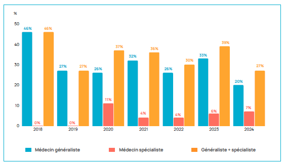 - les médecins généralistes, historiquement moteurs, conservent une place centrale mais moins dominante.