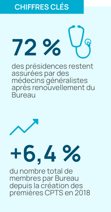 - En 2018, les médecins représentaient 46% des membres des bureaux de CPTS ; en 2024, ils n’en constituent plus que 20% dans les nouvelles structures.